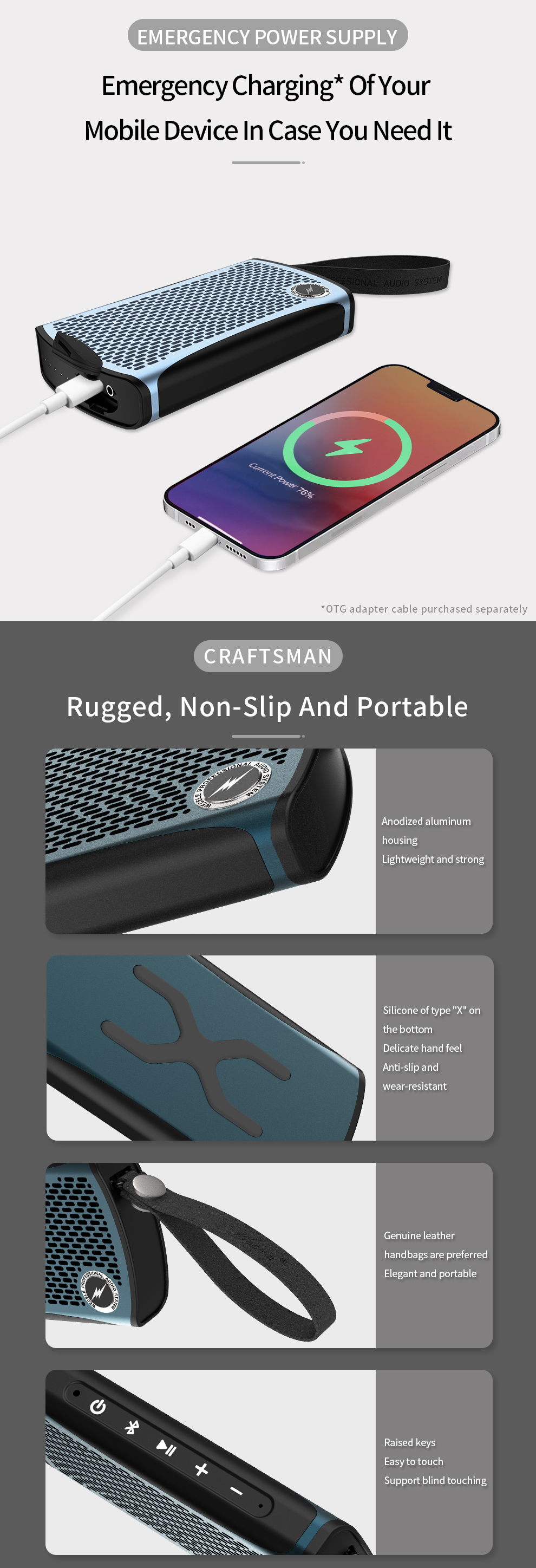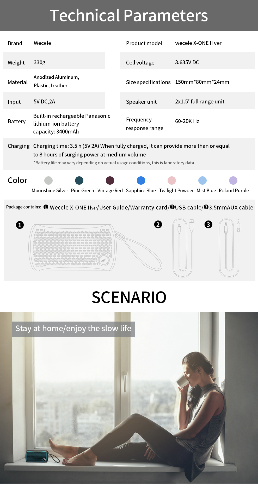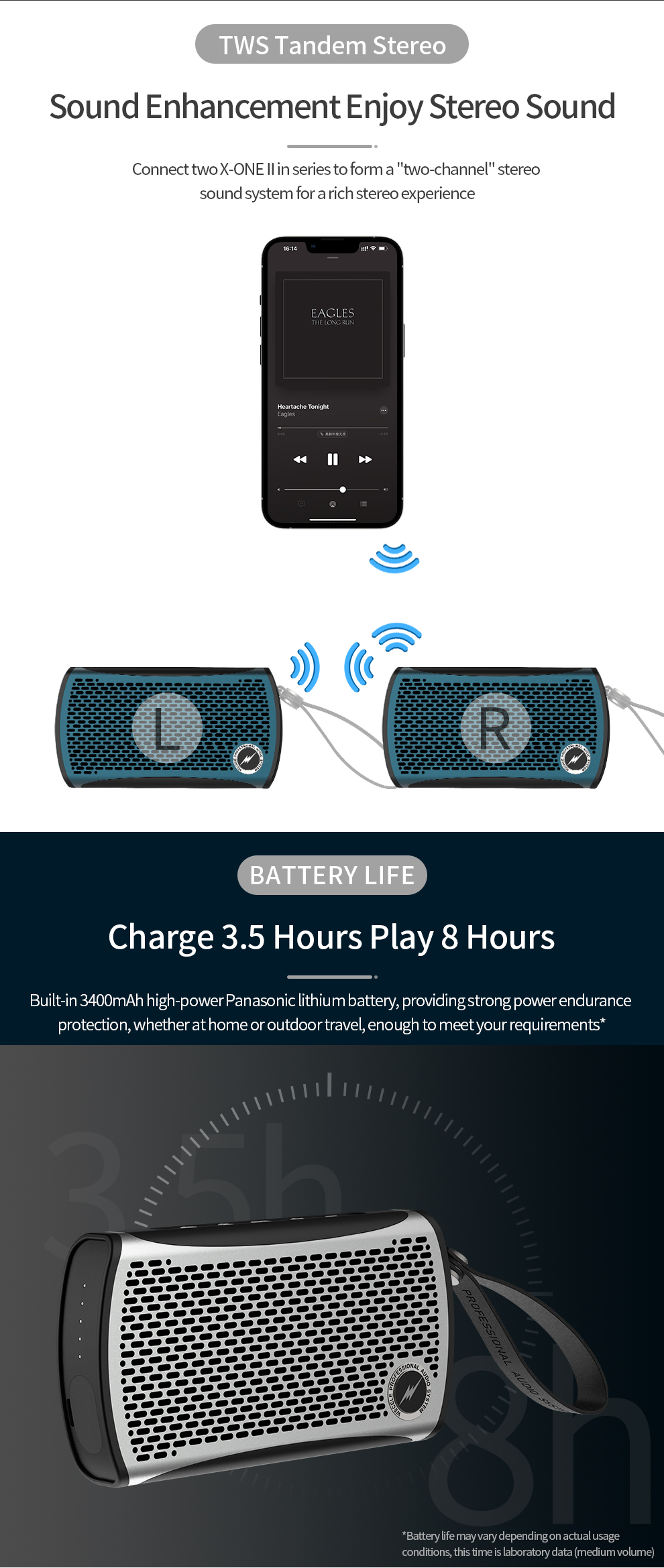 Charging: Charging time 3.5h (5V2A) can provide more than or equal to 8 hours at medium volume after full charge