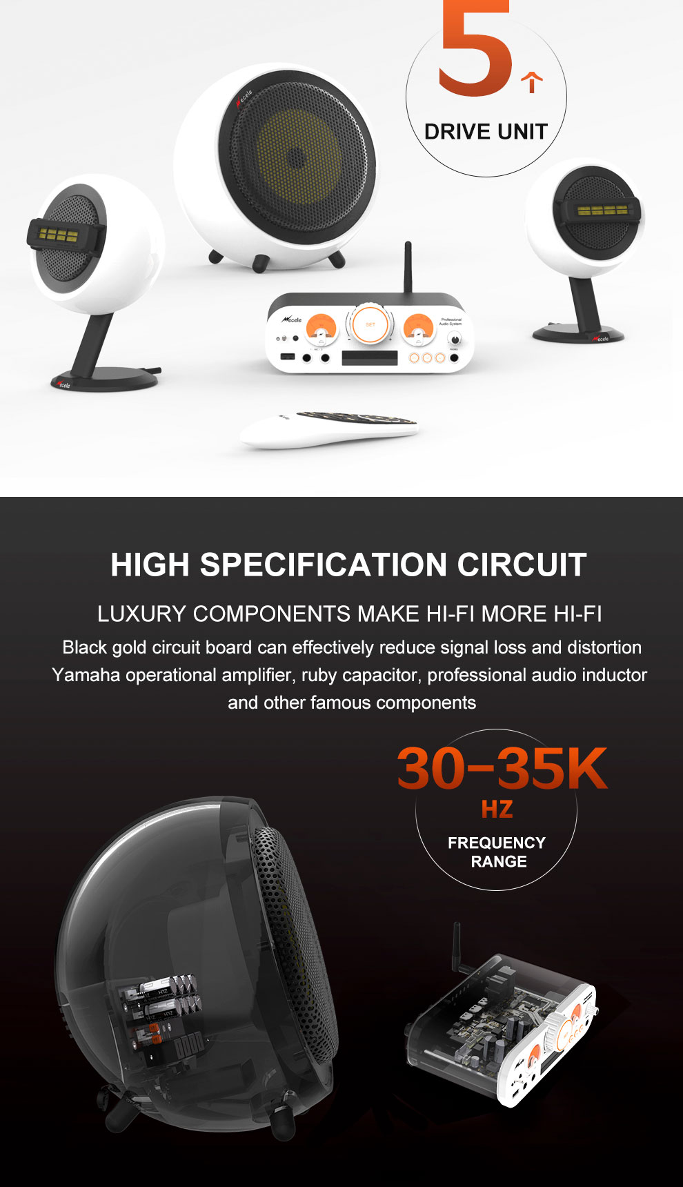 Drive unit:2×Belt-type(Ribbon Tweeter)2× full-range 3-inch midrange driver, 1×8-inch extra-heavy drive unit